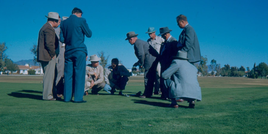 The collection of photographic materials was taken primarily by Noer beginning in the 1920s. The collection features more than 14,500 35mm slides originally organized by Noer. Images range from experimental turf plots to golf courses and athletic fields throughout North America. Valuable information associated with the images includes location, maintenance practices, disease and pest control, equipment, and fertilization issues.